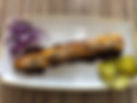 A skewer of grilled saffron chicken breast.